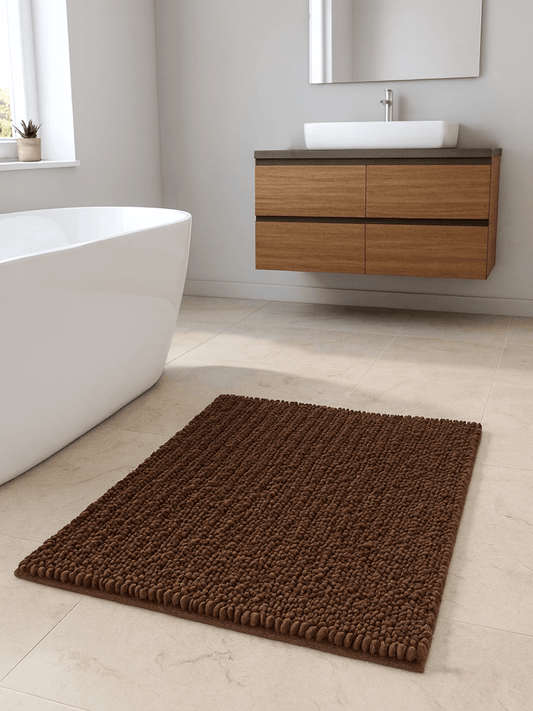 Taille de la salle de bain : privilégiez un grand tapis pour une pièce spacieuse et un format compact pour les petits espaces.