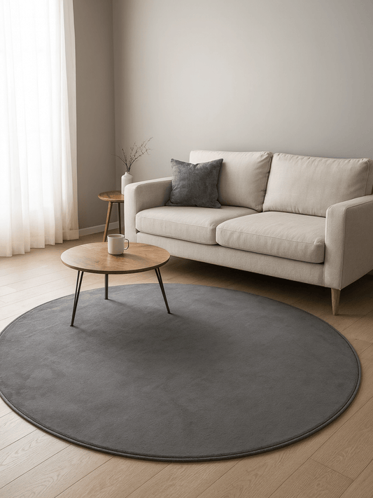 Miser sur un tapis gris foncé avec un canapé blanc ou beige pour un contraste chic.