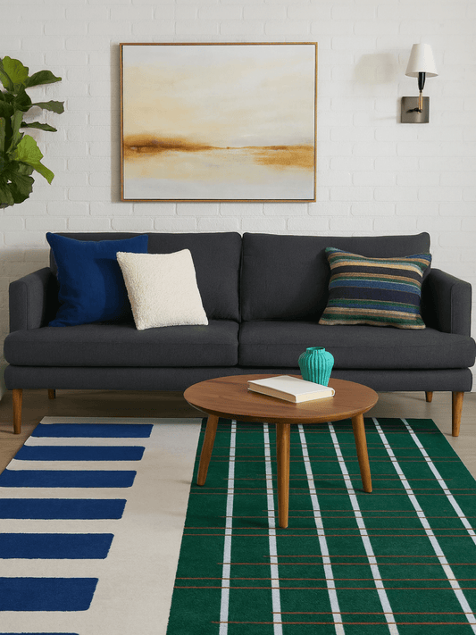 Marier un tapis graphique avec des coussins assortis pour une déco harmonieuse.