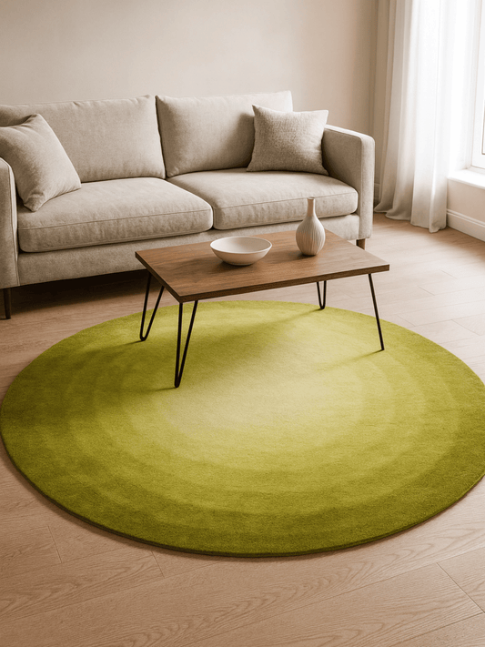 Tapis vert design : formes géométriques et modernes pour une décoration contemporaine.