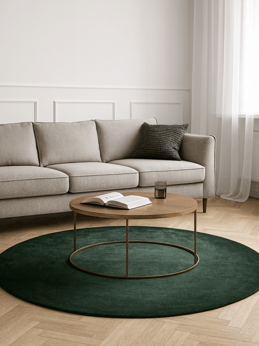 Tapis rond pour un effet cosy et convivial.